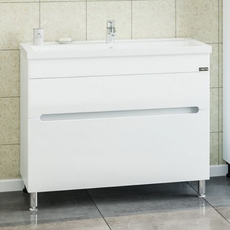 О коллекции: Мебель для ванной комнаты коллекции Лондон выполнена в современном стиле High-Tech. Тумба "Лондон 100" напольная + умывальник "Фостер 100". Корпус и фасад изделия выполнены из влагостойкого из МДФ и покрыты глянцевой ПВХ-пленкой. В этой модели встроены два выдвижных ящика с плавным ходом и бесшумным закрыванием. В верхнем ящике организован доступ к подключению коммуникаций.