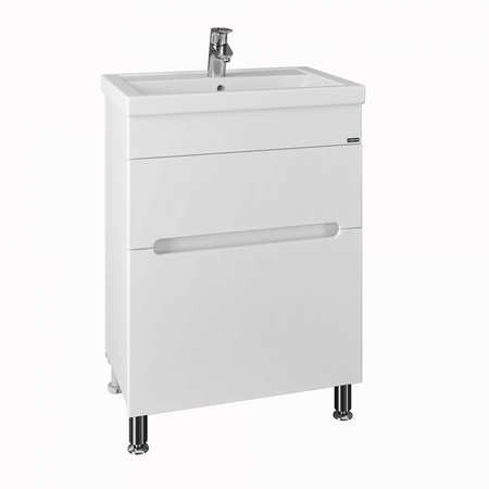 Тумба напольная "Лондон 60" для умывальника "Фостер 60". Фасады изделия выполнены из влагостойкого из МДФ и покрыты глянцевой ПВХ-пленкой. В этой модели встроены два выдвижных ящика с плавным ходом и бесшумным закрыванием. В верхнем ящике организован доступ к подключению коммуникаций.
