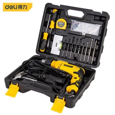 Ударная дрель Deli, комплексный ремонтный набор из 16 предметов, передний и задний бытовой светильник, многофункциональное украшение для сверления DL1016C