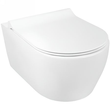 Безободковая конструкция (обеспечивает высочайший уровень гигиены и удобство в уборке из-за отсутствия труднодоступных мест и экономит воду).