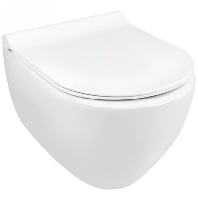 Безободковая конструкция (обеспечивает высочайший уровень гигиены и удобство в уборке из-за отсутствия труднодоступных мест и экономит воду).