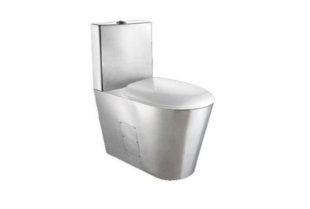 Туалет из нержавеющей стали с прямоугольным баком имеет двойную систему слива воды, предназначен для установки в местах с очень большой проходимостью и требующих антивандальную защиту. Белая крышка и сиденье идут в комплекте.