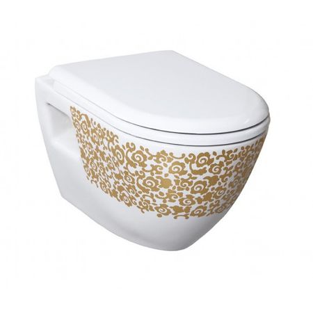 Подвесной унитаз Creavit Terra TP325-00CB00E-CA00, Dekor золото цветы, с биде