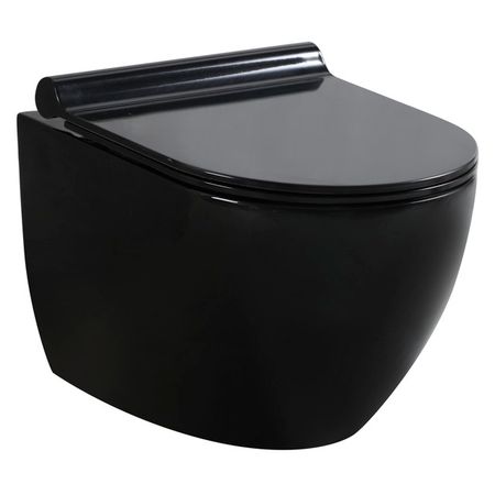 Тип по установке: подвесной Тип выпуска: горизонтальный Размер: 490х360х360 мм Сиденье в комплекте: да Микролифт: есть Материал: керамика Цвет: черный Безободковый: да
