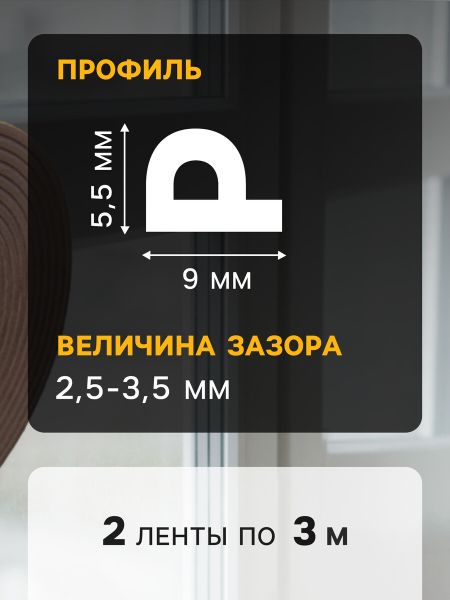 Уплотнитель резиновый ТУНДРА, профиль Р, размер 5.5×9 мм, коричневый, в упаковке 6 м. Резиновый уплотнитель — это полоса из вспененной высококачественной резины. Изделие имеет пористую структуру. С одной стороны полосы клеящий слой, который закрыт защитной бумагой. Изделие используется в быту и в производственных помещениях для шумо- и теплоизоляции, а также уплотнения оконных рам, створок или дверной коробки. <b> Преимущества</b> <ul> <li> Мягкий и гибкий, обладает амортизационными свойствами.</li> <li> Устойчив к воздействию окружающей среды.</li> <li> Выдерживает большие колебания температуры.</li> <li> Долговечен. Срок службы резины — до 10 лет, клейкого слоя — до 5 лет.</li> </ul> Резиновый уплотнитель профиля P предназначен для уплотнения щелей размером 2,5–3,5 мм.