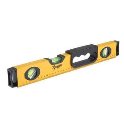 Уровень алюминиевый магнитный ТУНДРА, эргономичная ручка, 3 глазка, 400 мм. Алюминиевый уровень плотно ложится на измеряемую плоскость и не скользит по ней благодаря специальной накладке и встроенному в изделие магниту. Конструкция выполнена из алюминия и оснащена стойкими к излучению глазка́ми. <b> Преимущества</b> <ul> <li> Глазки инструмента обеспечивают точное определение отклонения поверхности по горизонтали, вертикали под углом в 45 градусов.</li> <li> Профиль магнитного строительного уровня изготовлен из алюминия высокой прочности, что обеспечивает надежность, долговечность и легкость конструкции.</li> </ul>