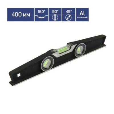 Уровень алюминиевый трапециевидный ТУНДРА ПРОФИ, фрезерованный, 3 глазка, 400 мм. Пузырьковый уровень – измерительный прибор, который будет одинаково полезен как в быту, так и при масштабных строительных работах. Трудно идеально ровно повесить картину в раме или полку для книг без дополнительной помощи, а вывести идеально ровную стену без уровня просто невозможно. Он имеет несколько глазков,которые помогут точно проверить ровность как горизонтальных, так и вертикальных поверхностей.