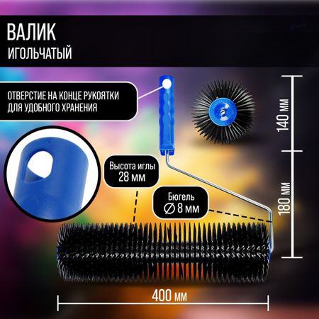 Валик игольчатый тундра, 400 мм, высота иглы 28 мм
