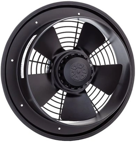 BVN (БиВиЭн) BDRAX 250-4K это осевой вентилятор, в котором и лопасти, и корпус изготовлены из листового металла с черным порошковым электростатическим покрытием. Крыльчатка крепится к корпусу при помощи стальных держателей, что делает всю конструкцию прочной и надежной для жестких условий эксплуатации.