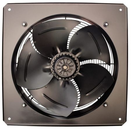 Осевой вентилятор ESQ (ИЭсКью) YWF4D-450B-B0 с настенной панелью, нагнетание оборудован стальной защитной решеткой и прочной монтажной панелью, что значительно облегчает процесс его установки. Вентилятор работает в широких температурных пределах от -30 до +55 градусов. Двигатель с классом защиты IP44 дополнен термозащитой.
