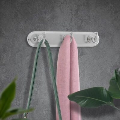 Вешалка ТУНДРА TVT002, металлическая, трехрожковая, цвет хром. Металлическая вешалка с тремя рожками хромового цвета для современного хранения одежды. Простое и стильное решение для любой прихожей. <b> Преимущества конструкции</b> <ul> <li> Три прочных металлических рожка обеспечивают достаточно места для верхней одежды без перегрузки пространства.</li> <li> Хромированное покрытие защищает поверхность от коррозии и придает вешалке презентабельный внешний вид.</li> <li> Материал из металла гарантирует долговечность и устойчивость к механическим повреждениям.</li> </ul> <b> Практичность использования</b> Компактные размеры делают эту вешалку идеальным выбором для небольших помещений. Хромированный цвет легко сочетается с различными стилями интерьера, добавляя современный акцент. <b> Удобство эксплуатации</b> Простая конструкция облегчает очистку и обслуживание. Вешалка подходит как для повседневной одежды, так и для более деликатных вещей, сохраняя их форму и внешний вид. Выбирая эту вешалку, вы получаете практичное и эстетичное решение для создания функционального пространства в вашем доме.