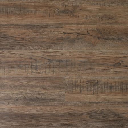 Современное напольное покрытие SPC (Stone Polymer Composite) с фактурой под дерево, многослойной структурой на основе каменно-полимерной плиты (плотность 2100 кг/м3 сопоставима с керамогранитом), декоративного покрытия и полиуретанового защитного слоя.