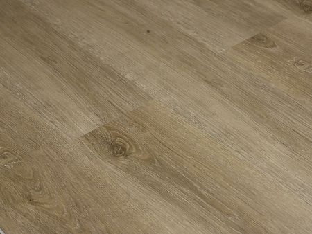 Современное напольное покрытие SPC (Stone Polymer Composite) с фактурой под дерево, многослойной структурой на основе каменно-полимерной плиты (плотность 2100 кг/м3 сопоставима с керамогранитом), декоративного покрытия и полиуретанового защитного слоя.
