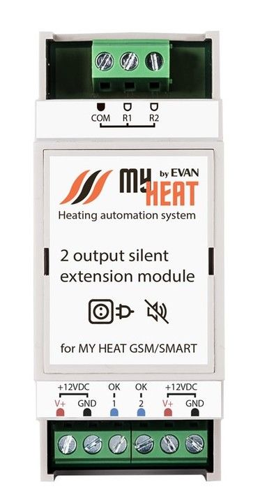 Блок симисторов на 2 выхода MY HEAT (Майхит) подключается к контроллеру по управляющим проводам и предназначен для бесшумной коммутации двух выходов электрической нагрузки посредством симистора. Используется в автоматизированных системах отопления и ГВС под управлением контроллеров GSM и SMART.