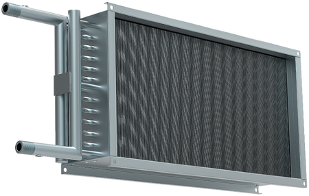 Водяной нагреватель модели Shuft (Шафт) WHR 500×300-2 создан для эффективного нагрева воздуха в системах канальной вентиляции. Такое устройство монтируется непосредственно в вентиляционный канал, а теплоносителем для нагревателя может служить вода или незамерзающая смесь. Корпус данного водяного нагревателя изготовлен из оцинкованного стального листа, а поверхность теплообменника из медных труб с волнообразными пластинами, за счет которых увеличена площадь теплообмена.