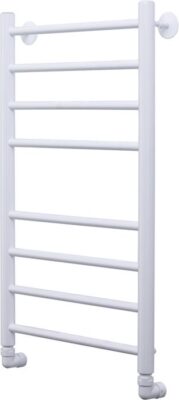 Вертикальный полотенцесушитель Comfysan (Комфисан) Luce W-8 80/40, белый изготовлен в форме лесенки с восемью перекладинами. При производстве изделия используется высококачественная нержавеющая сталь AISI304, которая обладает отличным запасом долговечности. Белое покрытие из порошковой эмали дополнительно защищает поверхность.