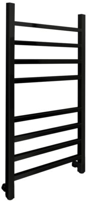 Благодаря полотенцесушителю INDIGO (Индиго) Aletto (в.р.1/2) 80/50 Черный Муар ваша ванная комната будет выглядеть стильно, а микроклимат в ней всегда будет идеальным. Плоские горизонтальные перекладины выполнены из квадратных стальных труб. Подключение к теплосети универсально (снизу, сбоку или по диагонали).