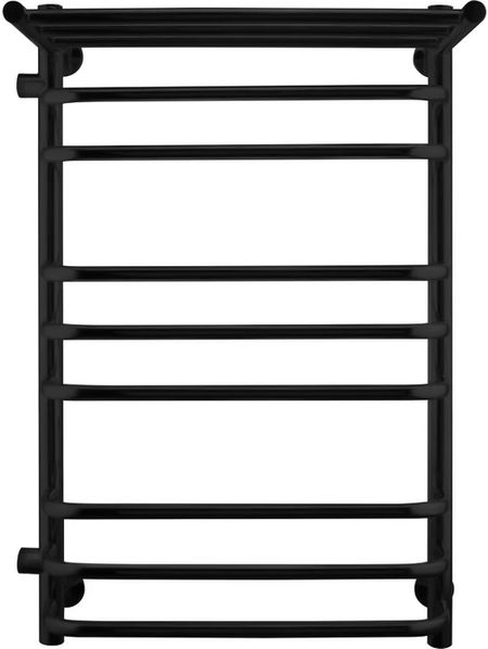 Современный полотенцесушитель INDIGO (Индиго) Brace с/п (н.р.1) 80/50 м/о 60 бок.подкл. слева Черный муар производится в формате выпуклой лесенки. Изделие в черном цвете удачно интегрируется в современные интерьеры ванных комнат. Полка на верхней грани позволит увеличить места для хранения и сушки без общего увеличения размеров.