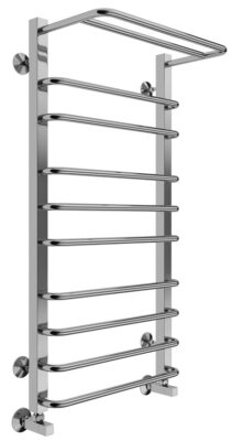 Водяной полотенцесушитель Terminus Арктур П10 500х1000 с полкой ‒ это прекрасное дополнение ванной комнаты в классическом или индустриальном стиле, ведь она оснащена прогреваемой по периметру полкой и выступающими перекладинами, что обеспечивают удобство сушки и эстетичный внешний вид.