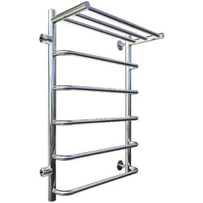 Водяной полотенцесушитель Тругор Идеал 1 П ПМ 80×50 с полкой. Используется для просушки влажных вещей и полотенец, а также дополнительного обогрева помещения. Изготовлен из пищевой нержавеющей трубы марки AISI 304, которая отличается стойкостью к высоким температурам и образованию коррозии, выдерживает значительные перепады давления.
