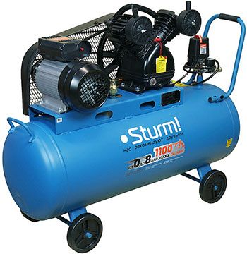 Воздушный компрессор Sturm AC932100B — мощный компрессор с ременной передачей. Эффективность и скорость работы компрессора увеличена за счет использования 2-х цилиндров.Оптимален для работ на стройплощадках, в автосервисе, на небольшом производстве и т. д. Простота подключения и работы дает возможность использовать все основные пневмоинструменты и насадки.Порошковая покраска ресивера обеспечивает высокую антикоррозийную стойкость, стойкость к перепадам температуры, механическим воздействиям и ультрафиолету.Увеличенный ресурс работы компрессора благодаря использованию ременной передачи. Простота подключения и работы дает возможность использовать все основные пневмоинструменты и насадки. Удобный кран для слива конденсата из ресивера. Два типа соединения для пневмоинструмента: быстросъемный (рапид) и елочка. Реле и регулятор давления на входе и выходе с манометрами позволяют создавать давление, максимально приближенное к требуемому потребителем. Порошковая покраска ресивера — высокая антикоррозийная стойкость, стойкость к перепадам температуры, механическим воздействиям, ультрафиолету (почти не выцветает). Защита от короткого замыкания автоматически отключает аппарат при увеличении напряжения.Технические данные:Тип соединения: рапид (штуцер) 1шт, Елочка (штуцер) 1 штМанометры давления: давление в ресивере/давление на выходе (2)Напряжение питания (В): 220Артикул: AC932100BКоличество цилиндров/ступеней: 2Тип компрессора: поршневой, коаксиальный, масляныйМаксимальная мощность (Вт): 2 400Защита от перегрева: даПроизводительность (л/мин): 370Колеса: даЗащита от перегрузки: даЧисло оборотов (об/мин): 1 100Давление (бар): 8Объем ресивера (л): 100Вес: (кг): 65,5