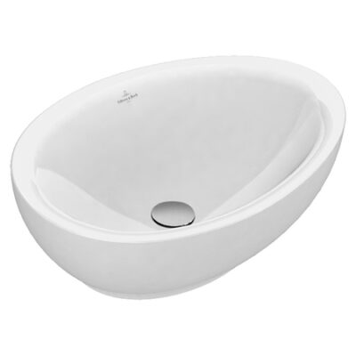 Раковина для установки на столешницу, Aveo new generation, Овальная модель, для высоких смесителей или смесителей с креплением на стену, без зоны для отверстий для монтажа смесителя, с переливом размер: 59.5×40см цвет: белый альпин ceramicplus