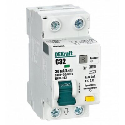 Главная » Строительство и ремонт выключатель дифференциальный DEKRAFT (АВДТ) 1P+N 32А 30мА тип AC С 4,5кА Просмотров 8 Серия: DEKRAFT Номинальный ток: 32А Ток утечки: 30мА Количество полюсов: 2шт Напряжение:220В Предельный ток отключения: 4,5кА DEKRAFT