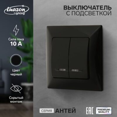 Главная » Строительство и ремонт Выключатель luazon lighting Просмотров 6 Выключатель Luazon Lighting "Антей", 10 А, 2 клавиши, скрытый, с подсветкой, черный. Luazon Lighting