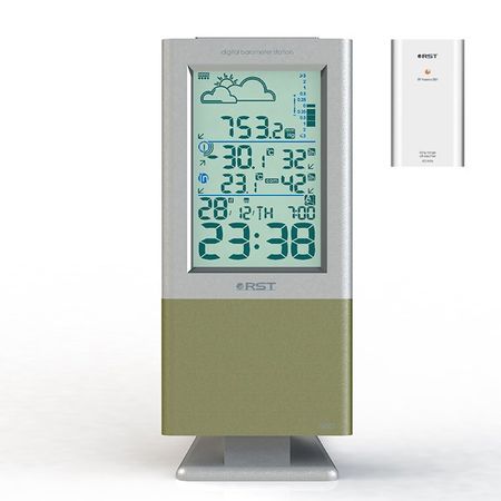 Современная компактная модель цифровой метеостанции с выносным датчиком RST 02557 имеет отличный дизайн, в стиле hi-tech , благодаря которому можно завершить любой интерьер или добавить дизайнерскую изюминку. Домашняя метеостанция популярна среди пользователей и хорошо себя зарекомендовала на российском рынке, благодаря использованию специальных высокочувствительных сенсоров, которые распознают самые мельчайшие колебания атмосферного давления. Есть все самое необходимое для составления прогноза погоды, лишних функций нет. Основной дисплей позволит вывести крупным планом цифры показателей температуры и цифрового барометра. Практически с любого расстояния пользователь может проконтролировать процесс работы.