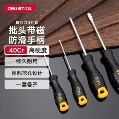 Высокопрочная отвертка Deli, набор отверток, инструменты для ремонта компьютеров, набор из 4 предметов с магнитной присоской