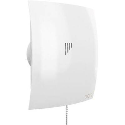 Вытяжной вентилятор осевого типа DiCiTi BREEZE 5C-02 имеет тяговый выключатель, т.е. для выключения или включения прибора нужно потянуть за шнурок. Достаточно простой монтаж осуществляется с помощью шурупов в имеющийся в стене воздуховод. Съемная лицевая панель упрощает обслуживание и чистку вентилятора.