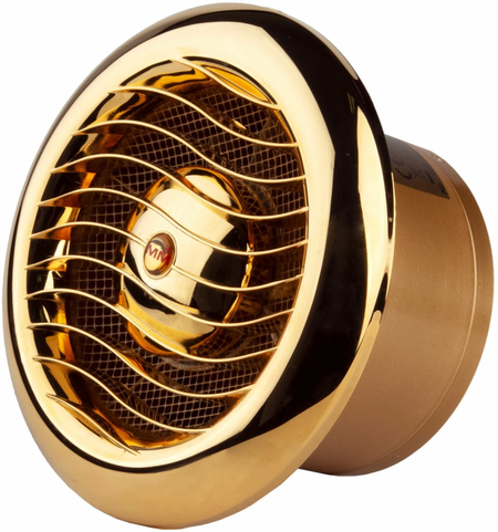 Накладной вентилятор MMotors (ММоторс) ММ 100/110 круглый 110 м3/ч обратный клапан/золото 24 карата – это роскошная модель, которая подойдет для самого требовательного покупателя. Корпус покрыт 24 каратным золотом, внутри находится мощный электродвигатель работающий почти бесшумно. Прибор укомплектован обратным клапаном, препятствующим появлению неприятных запахов и пыли из воздуховода.