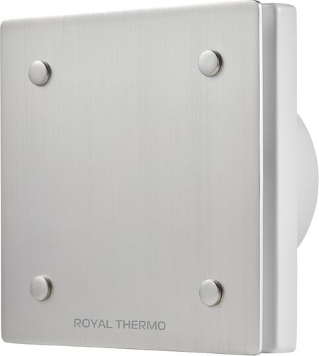 Дизайнерская вытяжка для ванной комнаты Royal Thermo (Роял Термо) RAFC 100 Chrome стилизована под хромированную поверхность. Компактная конструкция легко устанавливается на имеющуюся вентиляционную магистраль. Корпус устройства не меняет цвет со временем и обладает достаточным запасом прочности.