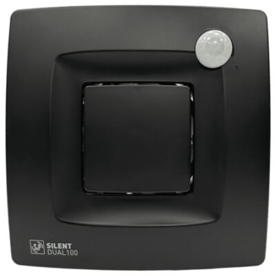 Soler Palau (Солэр энд Палау) SILENT DUAL 100 MATT BLACK представляет собой изящный накладной вентилятор, предназначенный для установки в ванных комнатах. По сравнению с множеством аналогов данная модель предлагает своему владельцу гораздо больше функций и возможностей. В вентилятор встроены датчик влажности и сенсор движения, что позволяет ему анализировать обстановку вокруг и работать автономно и максимально эффективно.