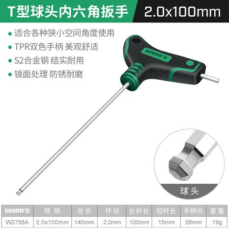 Wynns T-образный внутренний шестигранный ключ с шаровой головкой, одинарная внутренняя шестигранная отвертка, 2 мм, W2758A с шаровой головкой 1