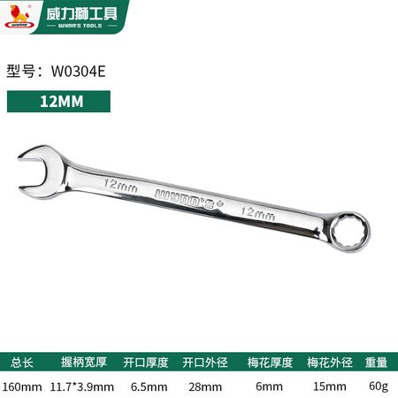 Wynns Wrench Plum Blossom Открытый двойной зеркальный ключ двойного назначения Хром-ванадиевая сталь Автоматический ремонтный станок 12 мм