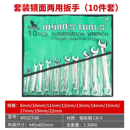 Wynns Wrench Plum Blossom Открытый двойной зеркальный ключ двойного назначения Хром-ванадиевая сталь Автоматический ремонтный станок 8 ~ 22 мм Набор из 10 предметов