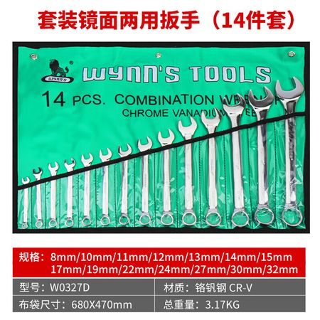 Wynns Wrench Plum Blossom Открытый двойной зеркальный ключ двойного назначения Хром-ванадиевая сталь Автоматический ремонтный станок 8 ~ 32 мм Набор из 14 предметов