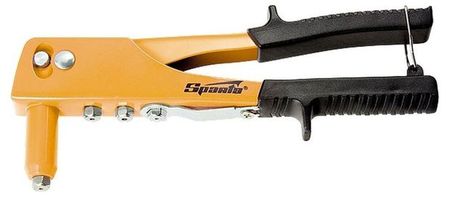 Применяется при работе по соединению листового металла, различных тонкостенных конструкций, металлических профилей. Рабочие части инструмента изготовлены из конструкционной стали. В комплект заклепочника входят четыре насадки под разные диаметры заклепок (2, 4-3, 2-4, 0-4, 8 мм) и ключ для их замены.