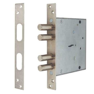 Тип замка: сувальдный Тип ригеля: цилиндрический Число ригелей: 4 Вылет ригеля: 40 мм Материал корпуса: сталь Количество ключей: 4 Наличие защелки: нет Наличие ответной пластины: да Межосевое расстояние: 0 Комплектация цилиндром: нет Цвет: сталь
