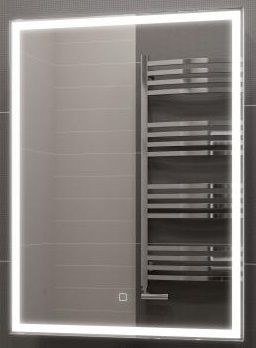 Оснащение зеркала: доводчик, зеркало с подсветкой, зеркало с розеткой, сенсорный выключатель, розетка и выключатель снаружи