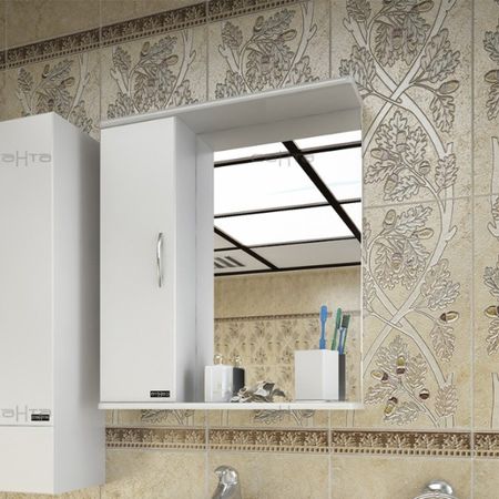 Зеркало-шкаф СанТа Прима 50 сочетает в себе влагостойкое зеркальное полотно и закрытую систему хранения на распашной дверце. Подвесная конструкция удобна для доступа к необходимым вещам. Хромированная ручка-скоба выдерживает частое открывание дверцы. Покрытие фасада глянцевой ПВХ-пленкой позволяет достичь почти максимальной водонепроницаемости и защитить поверхность от брызг.