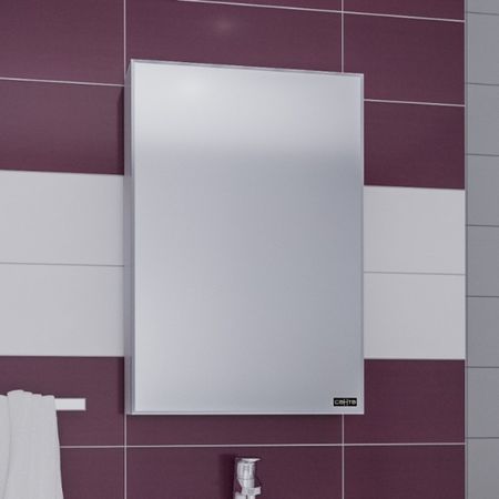 Настенное зеркало-шкаф СанТа Стандарт 50 станет украшением ванной комнаты. Корпус выполнен из прочной ДСП в классическом белом цвете. Фасад покрыт специальной матовой пленкой, повышающей водозащитные свойства. Зеркало по периметру оформлено фацетом, который придает изделию благородный вид. За дверцей располагаются две полки для удобного хранения косметики, гигиенических средств и лекарств. Створка распахивается в правую сторону и плавно закрывается благодаря доводчикам. По желанию можно изменить ориентацию двери на левостороннюю с учетом того, что монтаж будет проведен специалистом.