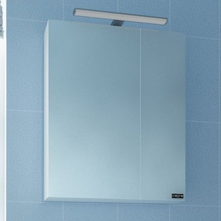 Зеркальный шкаф «Стандарт» от российской компании «СанТа» – современное решение для ванной комнаты стандартной площади. Модель из ДСП, ламинированной глянцевой пленкой с водоотталкивающими свойствами, сохраняет свою привлекательность в течение длительного периода эксплуатации. Фасад образуют две распашные двери с зеркальной облицовкой, надежно фиксируемые петлями с доводчиками. На двух вкладных полках можно расставить все необходимые косметические средства. Светильник с выключателем и розеткой, расположенными внутри шкафа, обеспечит комфортные условия пользования.