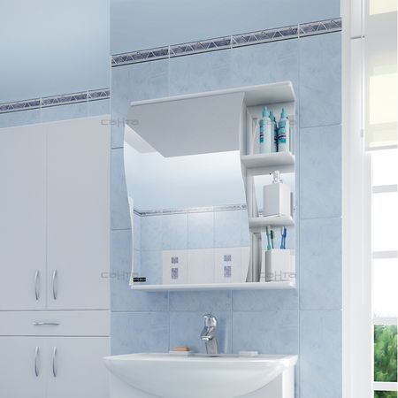 Зеркало-шкаф СанТа Волна 55 L восхитит плавностью очертаний и хорошей вместительностью. Модель состоит из шкафа за зеркальной дверцей и боковой секции с двумя полками и тремя малыми зеркалами. Подвесной способ установки обеспечивает удобство пользования для взрослых и недоступность для детей. Это позволяет хранить на полках маникюрные принадлежности, косметику и даже лекарства. Корпус и фасад изделия покрыты глянцевой водозащитной ПВХ-пленкой. Вся фурнитура хромирована, что гарантирует устойчивость к коррозии.