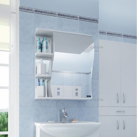 Привнести в интерьер нотки изысканности поможет зеркало-шкаф СанТа Волна 55 R. Плавные очертания зеркального полотна пересекаются с названием коллекции. Белоснежный фасад изделия покрыт глянцевой ПВХ-пленкой для защиты от случайных брызг. Влагостойкое зеркало устойчиво к потемнению и обладает прекрасной отражающей способностью. Шкаф за зеркальной дверцей и открытые полочки способны вместить множество необходимых мелочей – от зубных щеток до бритвенных принадлежностей.