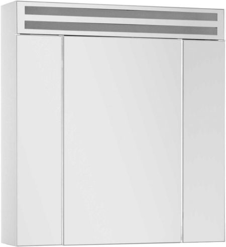 Зеркало для ванной комнаты De Aqua Эколь 70 (цвет — белый, с люминесцентными лампами) составляет коллекцию функциональных зеркал, таящих в себе сюрприз «зеркало+шкаф». Для любителей рационального подхода к использованию вещей и обладателей ванных комнат скромных размеров любая из моделей коллекции станет настоящей находкой. За плавно открывающимися дверцами можно спрятать кучу полезных мелочей, которая необходима в ванной комнате. Это и эстетично, и гигиенично. Механизм доводчика сохранит интимность обстановки ванной при открывании и закрывании распашной дверцы шкафчика, а зеркало, освещаемое люминесцентными лампами, визуально сделает пространство больше.
