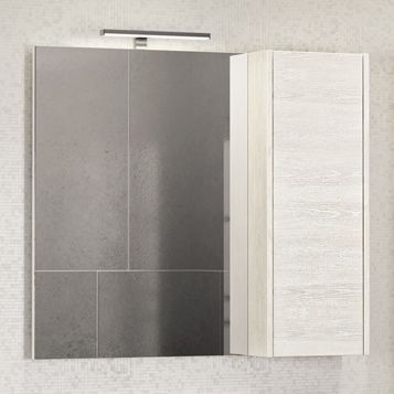 Створка оснащена петлями с плавным закрыванием. За створкой две горизонтальные полки. Высококачественное зеркальное полотно с амальгамой на основе серебра. Дополнительно можно укомплектовать светильником.