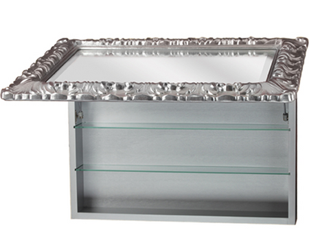 Зеркальный шкаф Migliore (Миглиоре) с дверцей открывающейся вверх. Мягкое закрывание (амортизаторы). Зеркальная дверь в рамке из полистирола . Внутри шкафа две стеклянные полки.