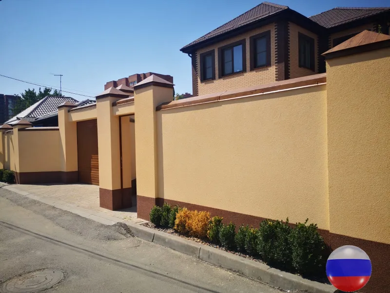 Отделка забора штукатуркой мраморная крошка
